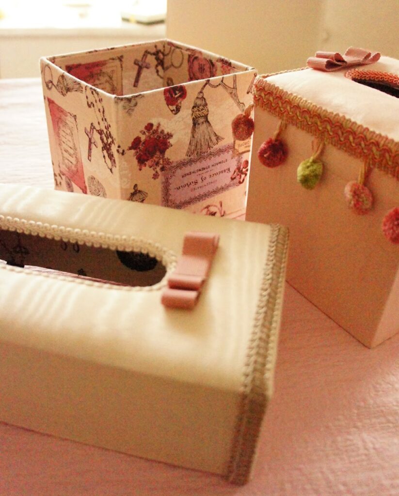 ヨーロッパの伝統工芸『カルトナージュ』カルトンと生地でお好みのボックスなど作れます。