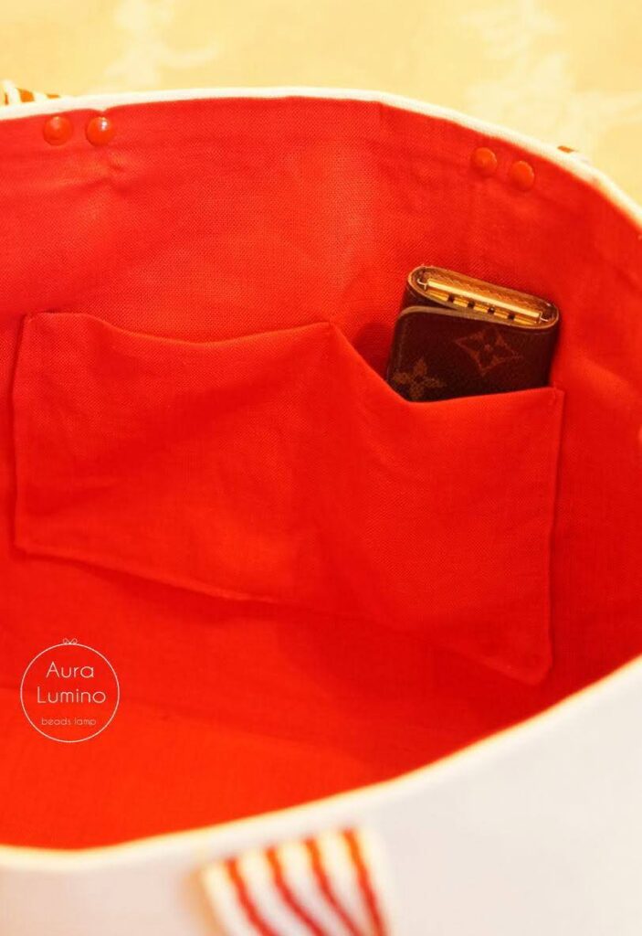 裏地にポケットを付けました。